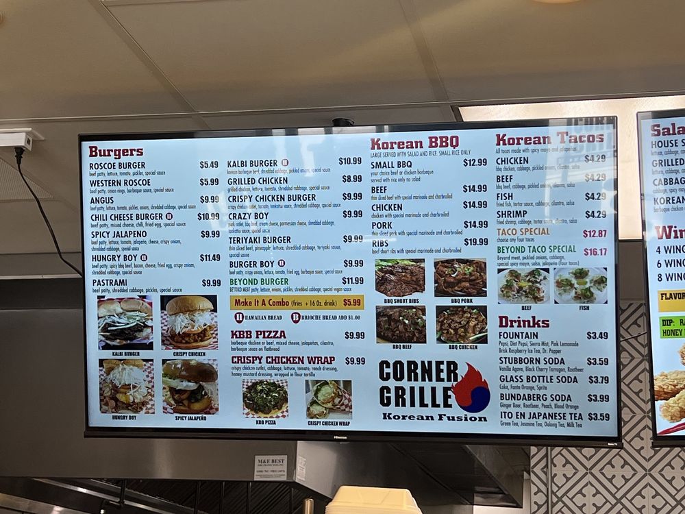 Welcome to Corner Grille, a unique fusion of traditional Korean flavors and classic American burgers located at 21853 Ventura Blvd, Woodland Hills, CA. This inviting eatery offers a delightful menu that features mouthwatering options such as the famed Kalbi Burger and crispy chicken burgers, both celebrated for their fresh ingredients and innovative flavor combinations.